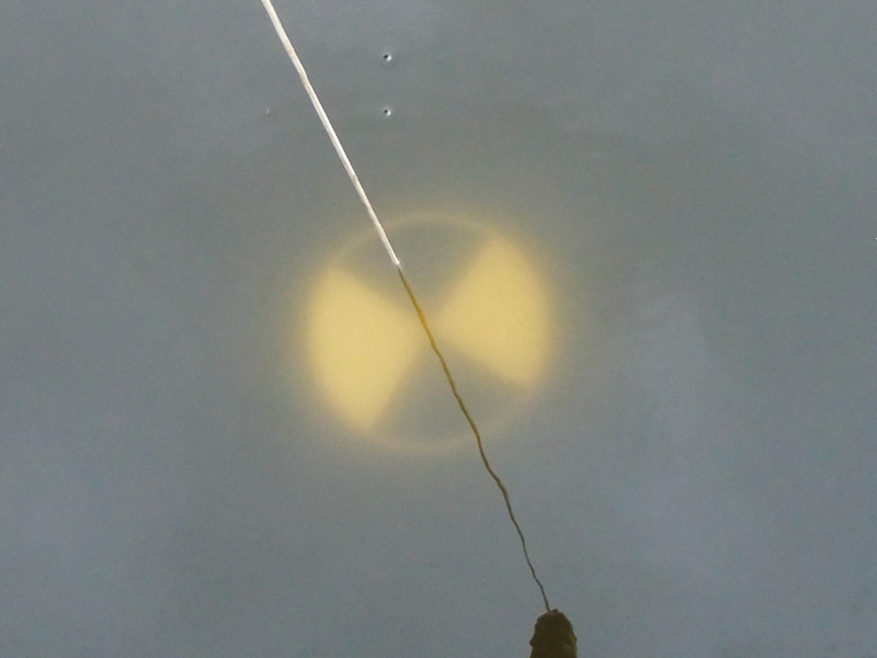 Koncem dubna je moře dokonale čisté a nemíchané, nacházejí se 6–12 mil od pobřeží, nad hloubkou 300 m. Třetí den plavby jsou podmínky obzvláště příznivé, a tak je průhlednost naměřena dokonale přesně a má hodnotu 44 až 45 metrů. Vítězí porcelán. Spolehlivý je pohled ze člunu od hladiny a velký stín na vodě. Malý disk je hůře rozeznatelný, ale postačuje vzhledem k odchylkám od velkého a jednodušší manipulaci. Bílé mraky snižují průhlednost oproti jasné obloze až o 4 m. Pečlivě jsou zaznamenány změny barvy vody s rostoucí hloubkou, postupně od odstínů nazelenalé a nakonec modré barvy, která postupně tmavne. Pak deska mizí z dohledu lidského oka, tedy je k nerozlišení od okolní vody. Žluté disky mizí v poloviční hloubce. Analýza spektroskopem vykazuje postupné mizení červené barvy, poté žluté a nakonec zelené barvy. Protože indigo a modrá zůstávají beze změny, je barva mořské vody modrá až do fialova.