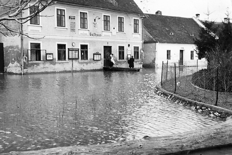 V dětských očích nebyly povodně žádným problémem. Pohled na zaplavený Mušov (zdroj: Archiv města Brna)