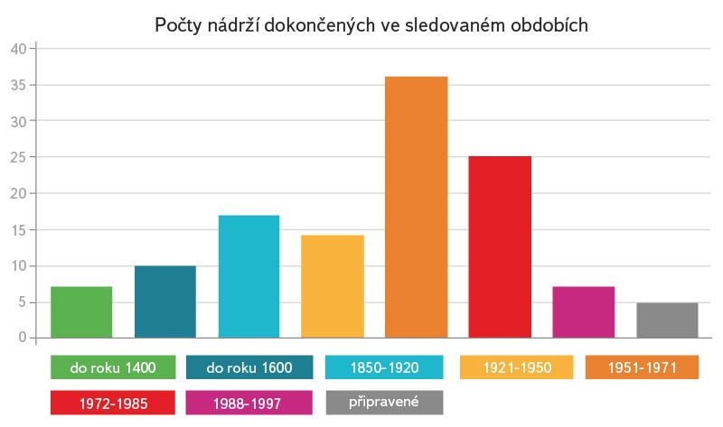 Obr. 3. Počty vybudovaných nádrží podle sledovaných období