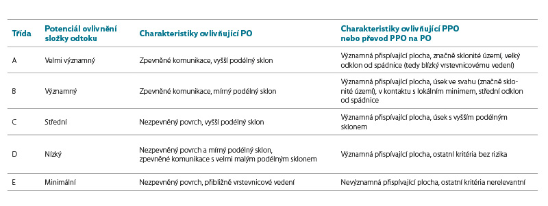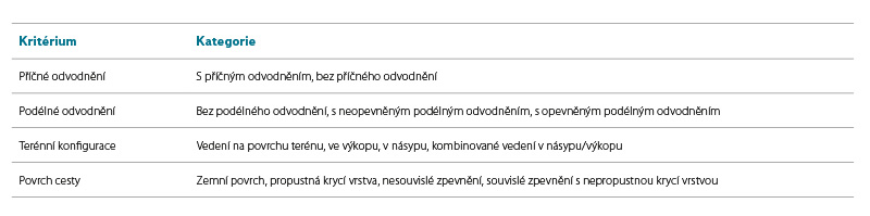 V první fázi řešení byla formulována obecná kritéria pro klasifikaci cestních úseků do tříd základní úrovně typologie, a to samostatně pro povrchový (PO) a podpovrchový odtok (PPO). Přehledně jsou shrnuta v tab. 1.