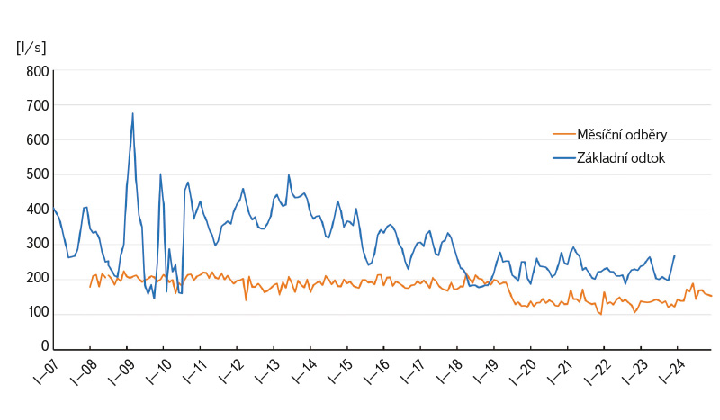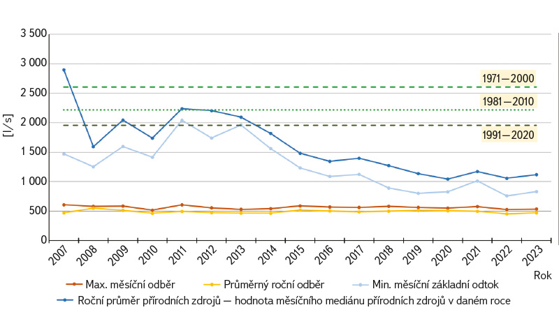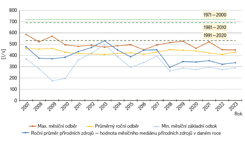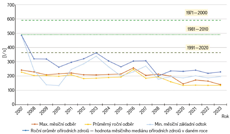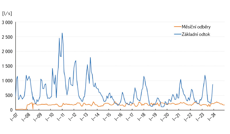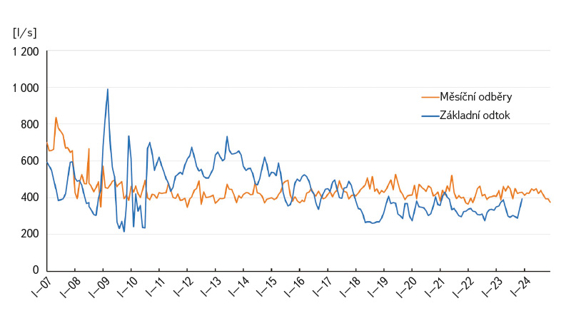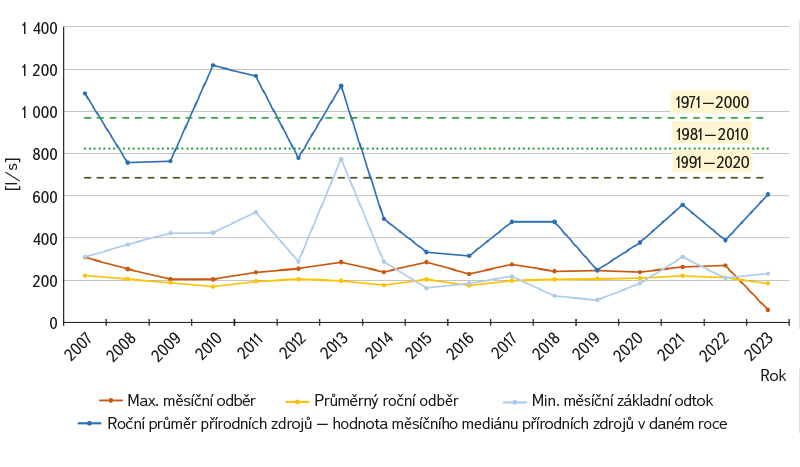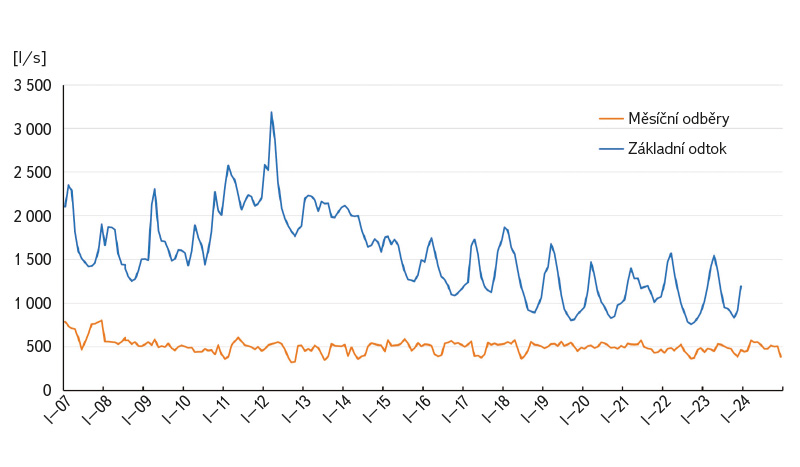a poté také porovnáním měsíčního základního odtoku a skutečných měsíčních odběrů za období 2007–2023.