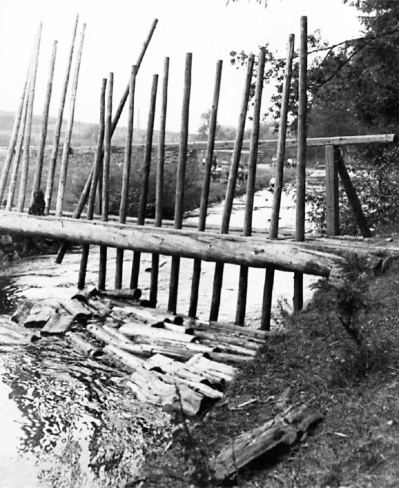 Fig. 5. Simple timber barrier a so called rechle (from the German Rechen, meaning rake) (source: Roučka, Z. Předválečnou Šumavou. Život – práce – krajina. Plzeň, 2006)