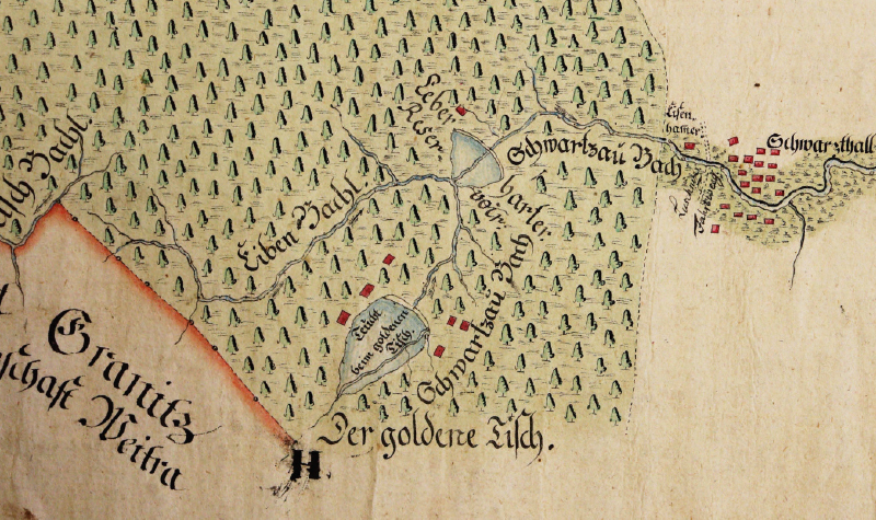 V roce 1783 panovalo velké sucho; navíc předchozí rok byl na srážky rovněž chudý. Snad to byl i nedostatek vody, co Riemera koncem května přimělo k podání návrhu na zřízení nové plavební nádrže, tentokrát na Černé. Po jejím zřízení, uvádí Riemer, nebude pokaždé nutné s další voroplavbou čekat do opětovného naplnění Pohořského potoka vodou. Při malém vodním stavu se budou moci vody z obou rezervoárů doplňovat. Z textu nevyplývá, o kterou plavební nádrž se jedná. S největší pravděpodobností šlo o později zaniklý Leberhartský rezervoár (Leberharter Reservoir), jehož existenci dokládá nedatovaná mapa vzniklá patrně těsně po roce 1795 (obr. 7). Tato plavební nádrž se nacházela při soutoku Černé a Huťského potoka. Druhá plavební nádrž na Černé – Zlatá Ktiš – byla budována později, v letech 1789–1796 (podle Theodora Wagnera v publikaci z roku 1904). V roce 1783 patrně z vybudování rezervoáru sešlo, protože návrh na jeho zřízení opakuje obsáhlé dobrozdání buquoyského hospodářského úřadu z počátku února 1784.