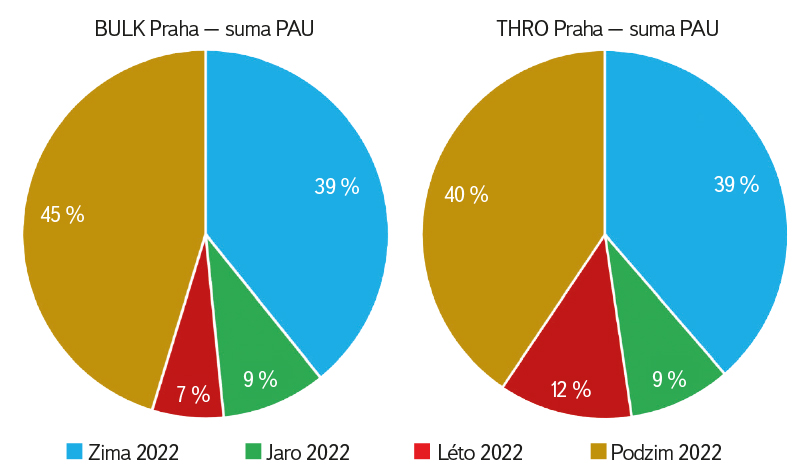 Obr. 9. Poměr sumárních koncentrací PAU ve srážkové vodě podle ročních období v roce 2022, lokalita Praha-Podbaba