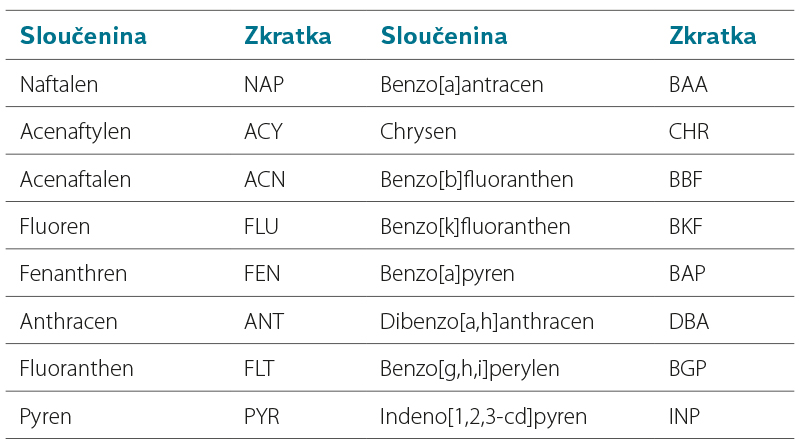 Tab. 1. Seznam analyzovaných PAU a jejich zkratky