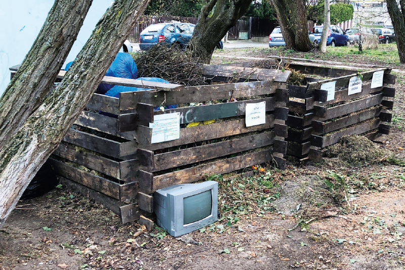 Obr. 5. Nevýhodou komunitního kompostování je nižší možnost kontroly odloženého odpadu od většího množství občanů, kdy se v místě sběru pak mohou objevit odpady v plastových pytlích, nebo dokonce odpady, které s kompostováním vůbec nesouvisejí (foto: archiv autorů)