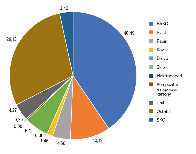 - Rozbory SKO prováděné autorským týmem ukazují, že množství BRKO v SKO, kam potravinové odpady patří, se stále pohybuje kolem 40 % hmotnosti, a to i přes skutečnost, že třídění BRKO na úrovní obcí je zavedeno již od roku 2019.