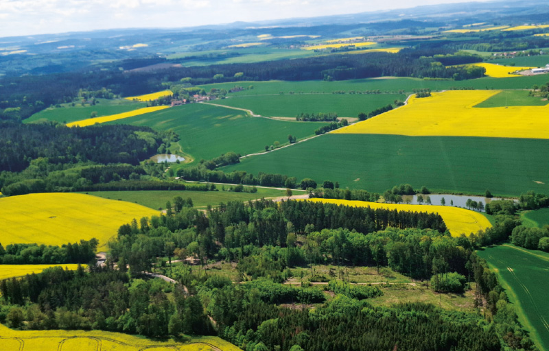 Obr. 7. Krajina v pramenné oblasti Výrovky po rybník Bobr (květen 2025)