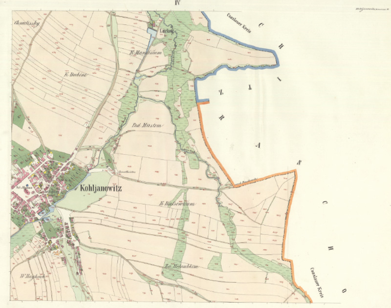 Fig. 10. Landscape in the area of the former Lucký mill on Imperial Imprint of the Stable cadastre (1839)