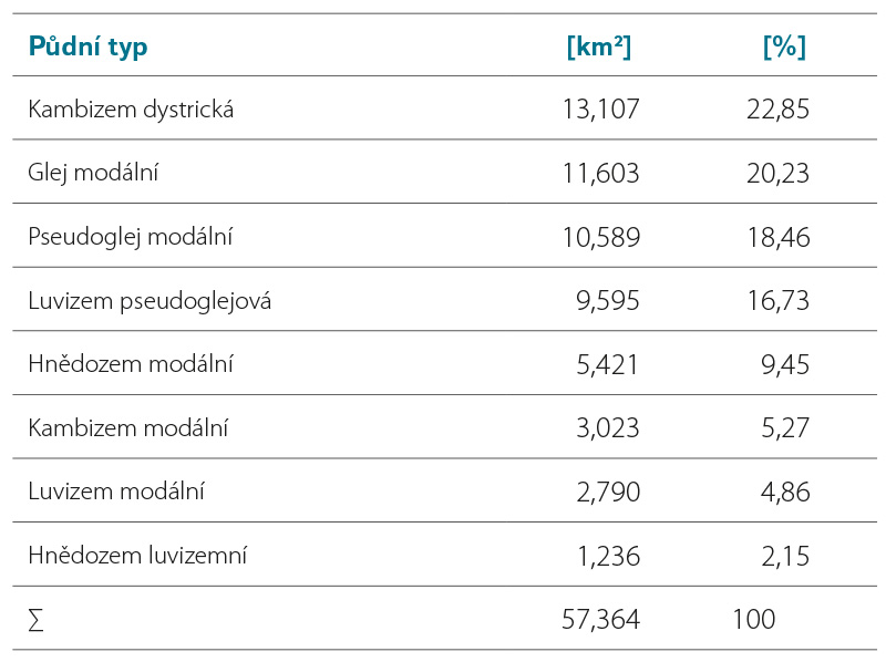 Půdní poměry v celém povodí jsou heterogenní, nachází se zde osm půdních typů (tab. 1). V těsné blízkosti vodních toků se vyskytují gleje (s výrazným reduktomorfním diagnostickým glejovým horizontem v důsledku dlouhodobého provlhčení vysokou hladinou podzemní vody), pseudogleje (s výskytem výrazného mramorovaného, redoximorfního diagnostického horizontu působením střídavého zaplavování a vysoušení půdního profilu) a luvizemě (půdy s přítomností luvického horizontu s tmavými argilany).