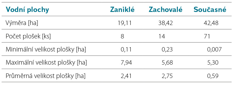 Pro interpretaci výsledků z hlediska časové stability vodních ploch/rybníků je zapotřebí brát v úvahu skutečnost, že jde o analýzu a srovnání pouze dvou výchozích stavů, a tím je doba II. vojenského mapování a současnost. Pochopitelně časem docházelo ke změně rozlohy těchto ploch vlivem hospodaření, např. mohlo dojít k zazemnění a později k následné obnově vodní plochy/rybníka. V případě rozdělení historických vodních ploch/rybníků na zaniklé a zachovalé mohly tedy zachovalé v mezidobí zaniknout a poté být znovu obnoveny. Jako zachovalá vodní plocha/rybník je označena i taková plocha, jež je výrazně menší než v minulosti, ale zůstala v původní lokalitě.