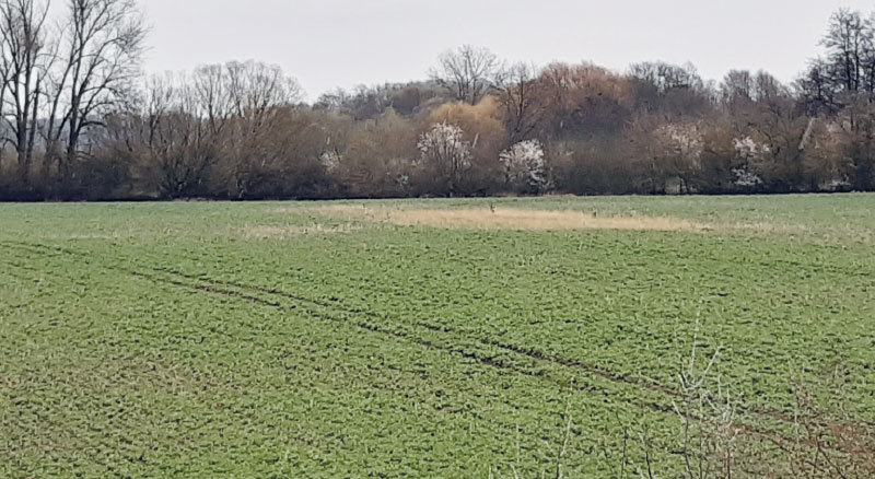 Fig. 15. Waterlogged arable land on the site of the disappeared Chlumecký pond near Chlumec nad Cidlinou (March 2023)