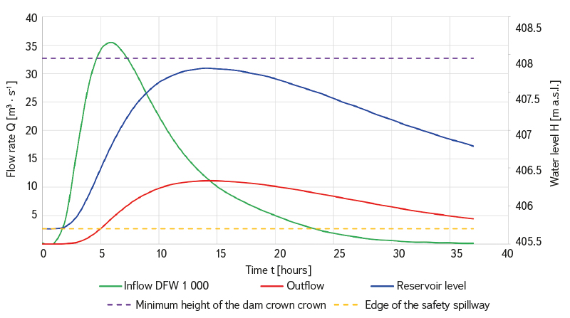 Fig. 7. Transformation of the flood wave KPV 1 000 in the reservoir