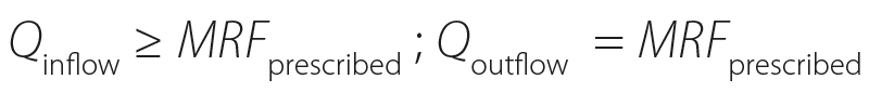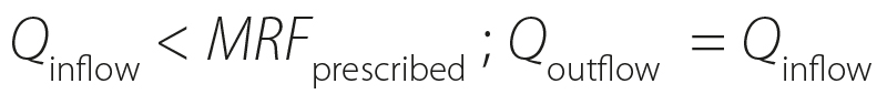 In the proposed approach to determining MRF for reservoirs and reservoir systems, operational conditions and current hydrological conditions are also considered. During reservoir filling and operation, the prescribed MRF should be maintained at the reservoir outflow. If the inflow into the reservoir decreases below the prescribed MRF value, the reservoir outflow should equal the inflow, as shown in the following equations: