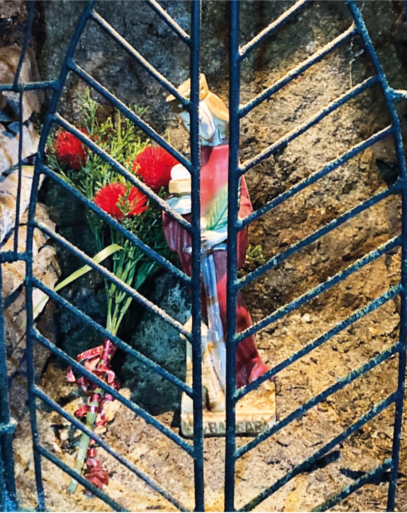 One of the few permanently illuminated spots is the altar dedicated to Saint Barbara, the patron saint of all miners (Fig. 13). Miners and mine workers came here to pray, and after the end of the Second World War and during the 1950s, political prisoners also prayed here while working in the uranium mines. The tiny chapel is therefore carefully maintained at all times, and even contains flowers.