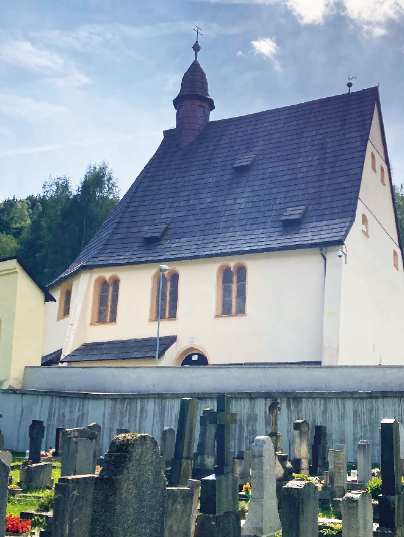A lasting reminder of the political prisoners in Jáchymov is also the local cemetery beneath the Church of All Saints, known as the Hospital Church (Fig. 22). It was established between 1516 and 1520, making it the oldest functioning historic building in the town. Why is it called Hospital? Because, from 1530 onwards, a municipal hospital stood next to the church, operating for over 400 years. In 1955 it was completely destroyed by fire and was never rebuilt; today, an urn grove occupies its site.