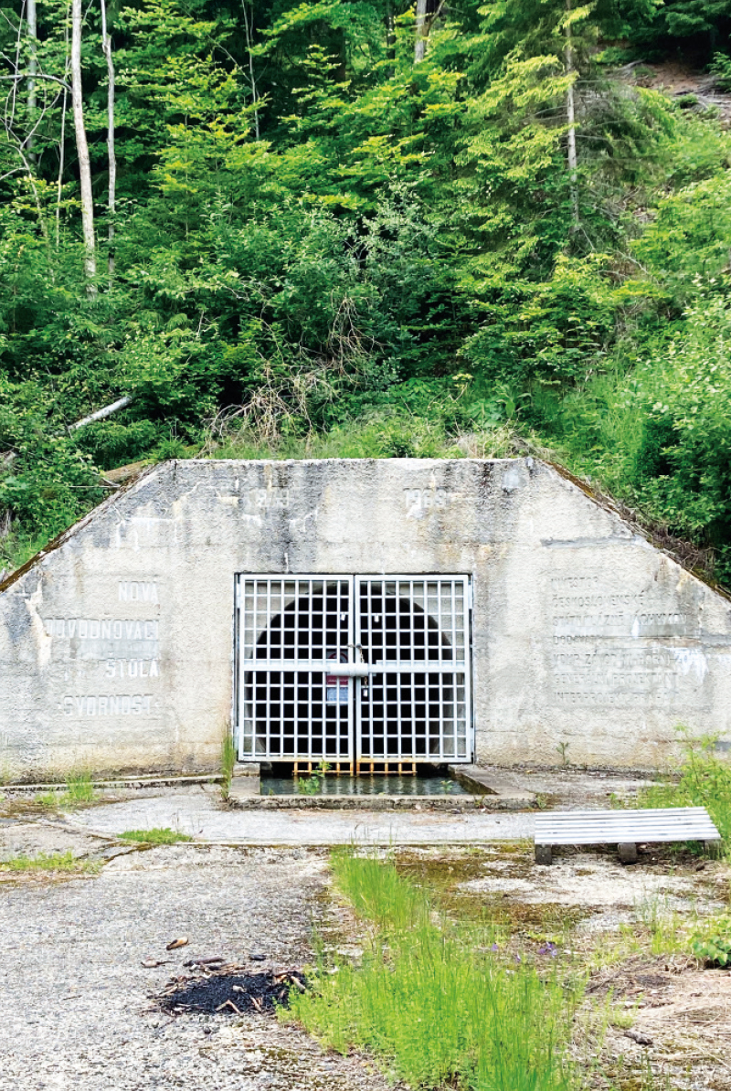 partner in establishing the trail was the Ministry of Industry and Trade. The Radon Trail has a total of ten stops with information panels, from which visitors gradually learn about radioactivity, natural sources of ionising radiation and radon, as well as its effects on human health, the ways radon penetrates buildings, and more. Perhaps the most surprising finding along the trail is that the most significant source of radiation exposure for humans comes from nature itself – specifically, the radioactive gas radon, which is present all around us. The final two panels focus directly on the spa and its treatments. The trail returns to them along a fresh forest path (Fig. 28). Were it not for the still-legible inscription on an old bench made of planks – “they can close you up, but they must let you out” – it would be hard to believe, on this sunlit path, just how turbulent the history of Svornost Mine, and indeed of Jáchymov as a whole, has been.