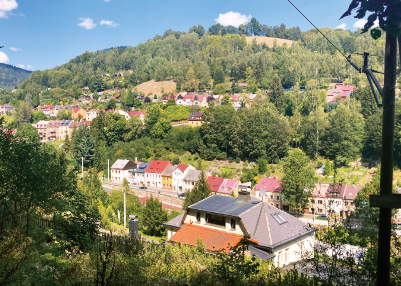 Let us return once more – and for the last time – to Jáchymov, a small town nestled in a deep, forested valley of the Ore Mountains. It lies somewhat hidden, yet in an excellent strategic location, within walking distance of Ostrov, Klínovec, and Boží Dar (in German Gottesgab; Fig. 1) – the highest town in the Czech Republic, situated right on the border crossing to Oberwiesenthal in Saxony (Fig. 2). From Boží Dar, one can also continue into Božídarské rašeliniště Nature Reserve.