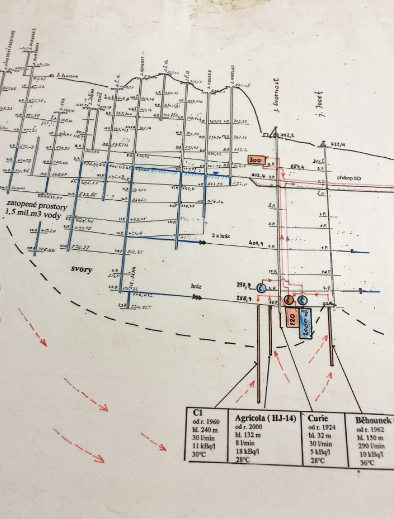 For balneotherapy, four springs are currently used in Jáchymov, as shown in the map from Svornost Mine (Fig. 6):