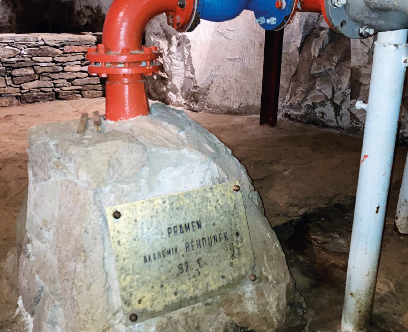 Following their exposure through mining activities, a system of several springs developed here, which are hydraulically connected and share the same water source and mineralisation, as well as similar chemical composition and nearly identical temperatures. All the springs are also characterised by pronounced radioactivity, which, together with other physicochemical properties of the water, creates a globally unique and extremely valuable natural medicinal resource.