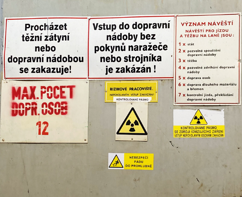The circuit of the twelfth level of Svornost Mine lasts only about an hour, after which it is back into the metal hoist cage heading upwards – towards light, warmth, and fresh air. Looking back at the upper part of the mine, an interesting detail comes into view: a propeller that keeps turning (Fig. 16). Indeed, we have been in the oldest functioning mine in Europe and the world’s first uranium mine (Fig. 17).