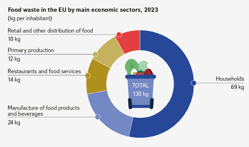 Fig. 1. Food waste production in the European Union at each stage of the food chain in 2023 [2]