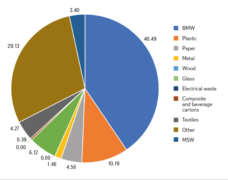 - Analyses of MSW carried out by the author team show that the proportion of BMW, which includes food waste, still accounts for around 40 % by weight, despite the fact that the separate collection of BMW at the municipal level has been in place since 2019.