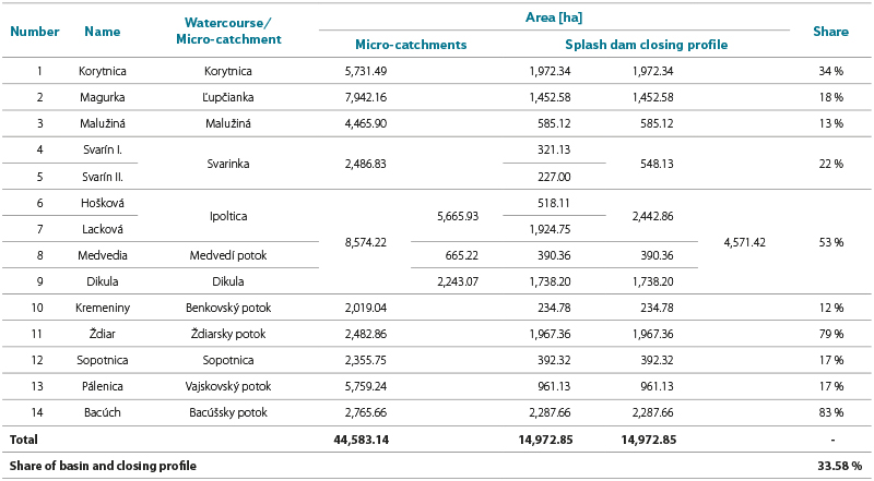 Tab. 3. Area of the micro-catchment and the closing profile above the splash dams